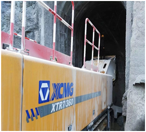 該工程在2015年開工,使用破碎錘及靜態炸藥爆破施工,月進尺較慢。由于進度慢、環境差,該項目改用徐工集團國內首臺大型XTR7/360懸臂式隧道掘進機施工。